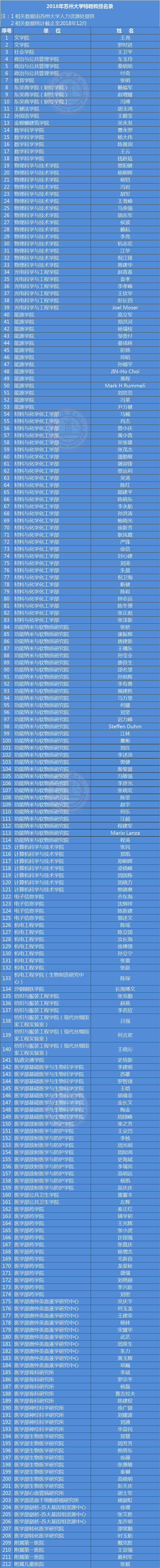 2018年苏州大学特聘教授名录