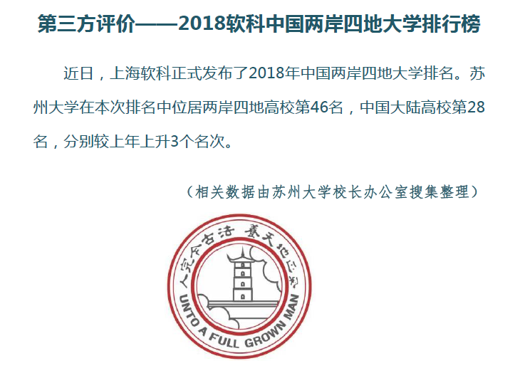第三方评价——2018软科中国两岸四地大学排行榜
